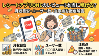ONE(ワン)レシートアプリのレビュー記事です。どんなポイ活アプリなのか、特徴、向いている人、月収目安、ユーザー数、実際に稼いだ人の割合、初心者が知るべき注意点までわかりやすく解説します。