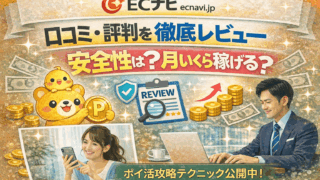 ECナビ ECナビのレビュー|評判・安全性・稼げる目安を初心者向けに徹底解説(主婦・サラリーマンOK) ECナビは運営20年以上・会員数約900万人規模の老舗ポイ活サイト。買い物やアンケートで貯めてPeX経由で現金化も可能。特徴・向く人・月収目安・注意点をやさしく解説。 2026.02.27 ECナビポイントサイトポイ活