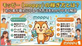 ポイントサイト モッピー(moppy)の稼ぎ方とは?|初心者が最初にやるべき方法をわかりやすく解説 モッピー(moppy)の稼ぎ方を初心者向けに解説。無料&即P、無料登録、アプリ案件、買い物、毎日貯める、レシ活、フクモニ、友達紹介、ゴールド会員の活用まで、効率よく稼ぐ方法をまとめました。 2026.03.10 ポイントサイトモッピー